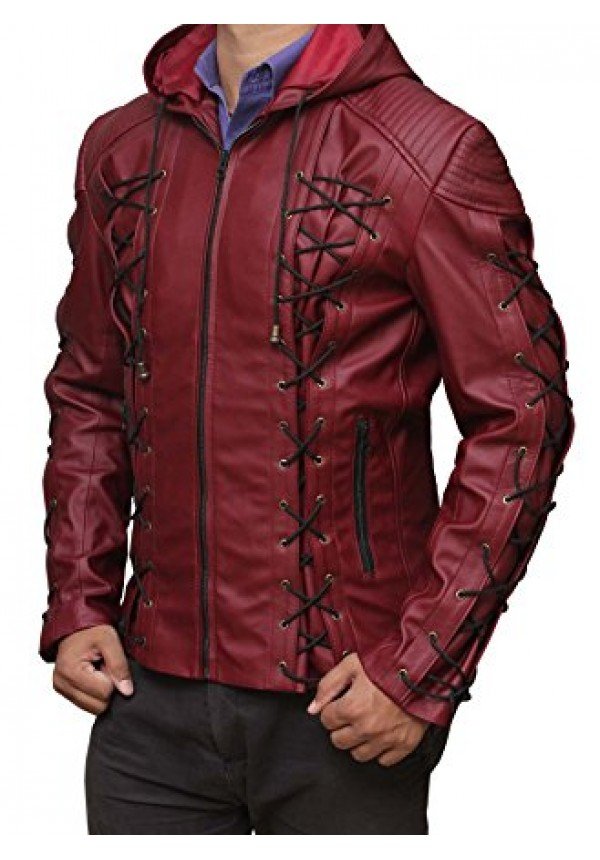 The Arrow Red Jacket is externally made out of PU Leather while viscose lining is stitched inside to keep the body comfortable. Stylish lace feature is done on both sleeves and also at the front. Some lines are made on shoulders too. Furthermore, this apparel has a hood, similar to the movie attire.